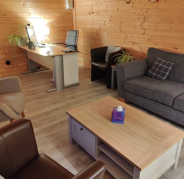 The counselling room: A cosy, private and purpose built fully heated and air conditioned room.